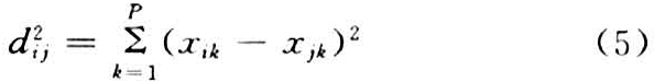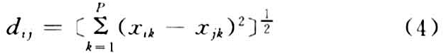 式中 xi、xj为数据矩阵中第i、第j行向量,(xi-xj)T是行向量(xi-xj)转置而得的列向量;Σ-1是p个性状间的协方差矩阵Σ的逆矩阵。这种距离克服了性状间相关的影响。当性状间不相关,且每个性状的方差为1时,马氏距离即为欧氏距离,所以它是欧氏距离的推广,又称为广义距离。