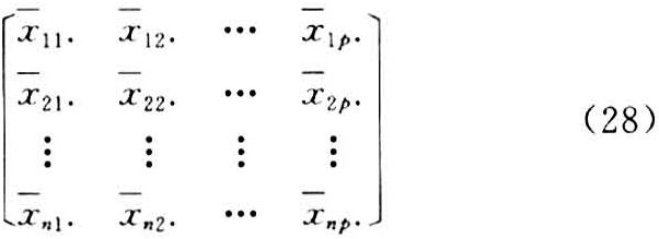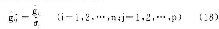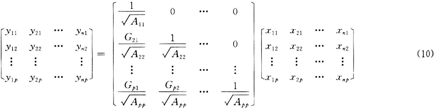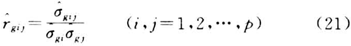 然后利用枢轴凝聚法求出误差协方差矩阵的枢轴凝聚元素Aii(i=1,2,…,户)、对数据进行转换的数值Gtj(i,j=1,2,…,户);求出误差+群体协方差矩阵的枢轴凝聚元素A′ii(i=1,2,…,p)。