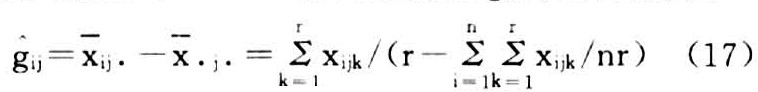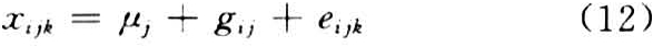 式中 Xijk为第i个群体第j个性状第k次观测值;μj为第j个性状的总平均数;gij为第i个群体第j个性状的基因型效应,服从N(0,,eijk为随机误差,相互独立,且都服从N(0,σ2)。