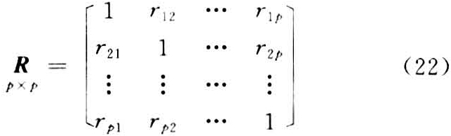 计算用标准差标准化的主成分值。取前户′个特征根,使其对总变异的累计贡献率p