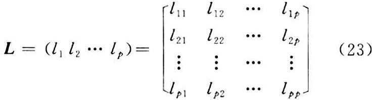 由相应的特征向量l1,l2,…,lp为列向量组成的正交矩阵: