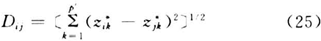 利用式(28)中的数据求每两个性状基因型值估计值间的相关系数rij,得到基因型值相半系数矩阵R。其他步骤皆同于前法。此法的优点在于所求得的基因型值相关系数矩阵R具有正定性,保证了能进行进一步的计算分析。不足之处是计算所得的遗传距离含有一部分环境因素的影响。
