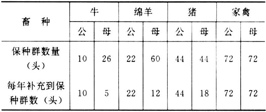 保存活体所需家畜的最低数量