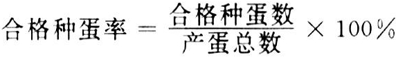 来自健康种禽群,用于繁殖后代的禽蛋。种蛋的品质与受精率、孵化率和雏禽品质密切相关。种母禽在规定的产蛋期内(蛋鸡在72周龄内,肉鸡在62周龄内,蛋用鸭和肉用鸭在72周龄内,鹅在70周龄内)所产符合本品种(系)要求和质量标准的种蛋,称为合格种蛋。合格种蛋率的计算方式为: