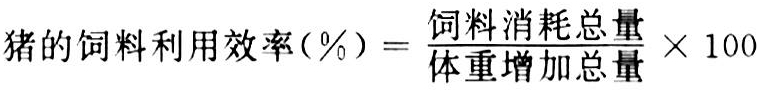 猪每增重一千克活重所消耗的饲料量,亦称饲料转化率或饲料/增重比率。可用饲料消耗总量与增重的比率表示,计算公式为: