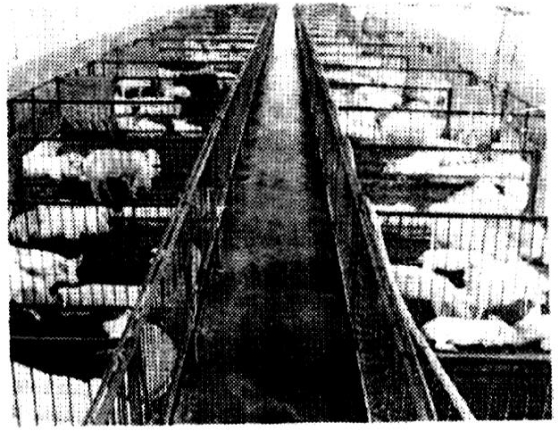 猪饲养在离开地面的网床上。主要用于分娩、哺乳母猪和断乳仔猪的饲养。