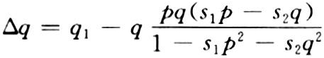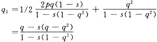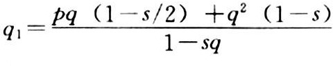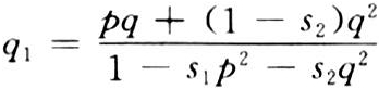 上式可以看出,△q随s1p大或小于s2q而增加或减少。当s1户=s2q时,△q=0,群体处于平衡状态。解这个方程,得到的平衡值为:
