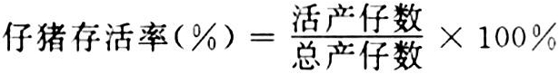 活产仔数与总产仔数的比率。是猪的品种和个体特征之一,每头母猪每次分娩完毕后统计,用于猪遗传改良和生产经济指标的核算。计算公式为: 仔猪存活率 仔猪存活率是母猪繁殖性能的重要指标,主要受母猪妊娠期饲养管理和分娩护理水平的影响。畸形胎、木乃伊和死胎可能是遗传引起,也可能是妊娠期营养不良造成(见胚胎死亡)。一窝仔猪的分娩通常需要1.5~2小时,中国产仔数多的地方猪种可能要2、3小时以上。