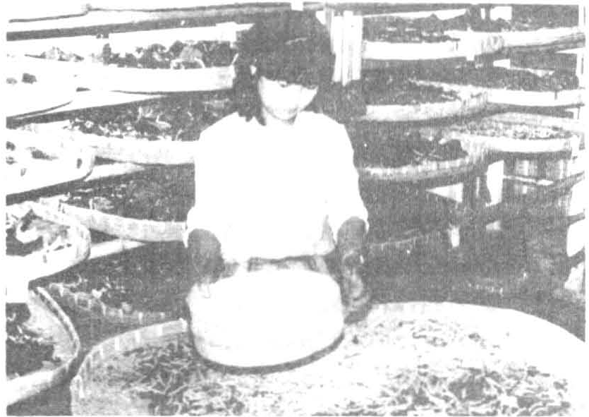 将漂白粉与石灰粉混合后撒在蚕体上能杀死附在蚕体上的真菌孢子,对蚕生理无不良影响。配制防僵粉时,首先要测定漂白粉中有效氯的含量,然后与石灰粉混合配成含有效氯2~3%的防僵粉(见图)。由于漂白粉中的有效氯极不稳定,一般要求随配随用。