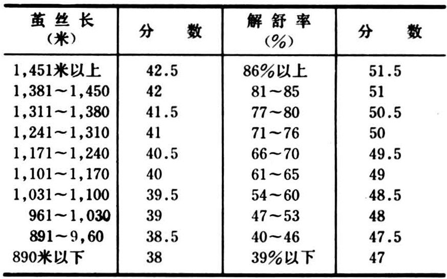 茧丝长与解舒率得分表