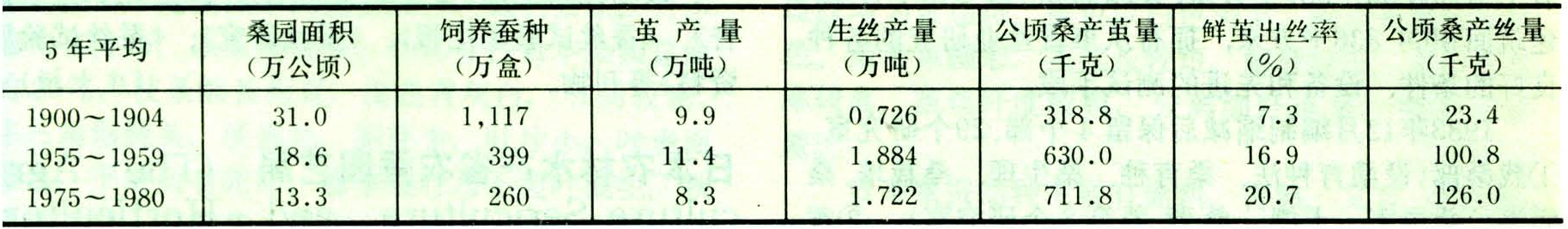 1900~1980年日本蚕业生产水平比较表
