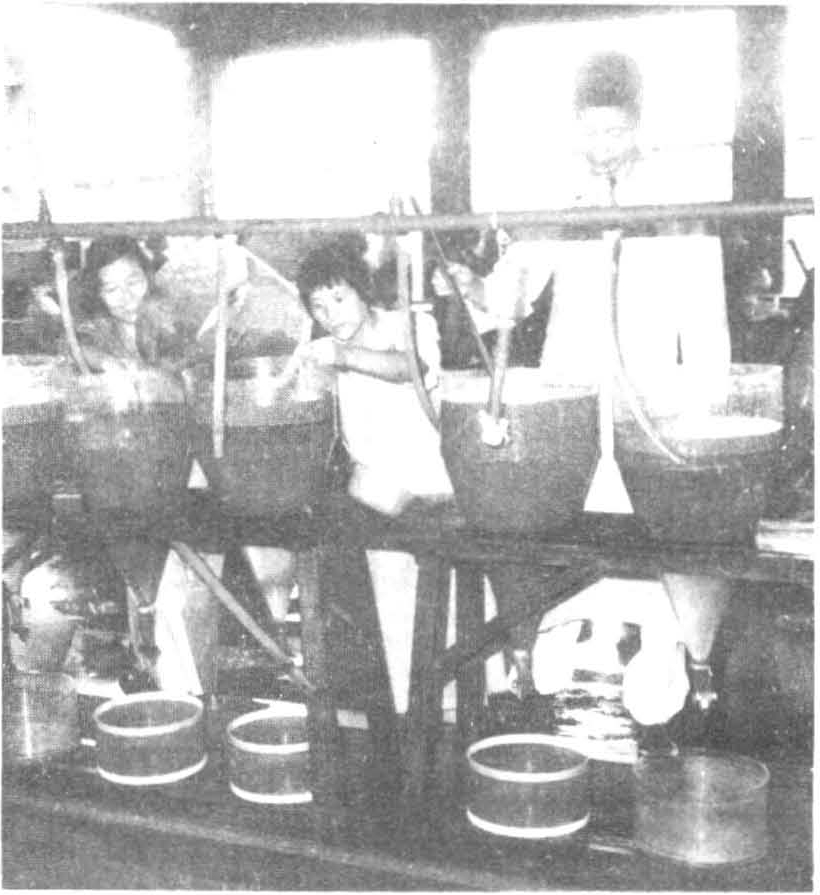 秋用种、春用种散卵洗落至装盒的程序包括脱粒脱浆、卵面消毒、盐水选卵、称量装盒等步骤。①脱粒脱浆:产有蚕种的布或连纸,先浸在15℃左右的清水中,经半小时~1小时即可将布铺在板上或水盆中,用刮刀紧贴布面将蚕卵顺次推刮到水中(图2),然后将蚕卵用铁丝筛除去蛾翅毛、草屑等杂物,洗清浆液,脱水,消毒。②卵面消毒:用有效氯0.3~0.35%的漂白粉稀释液,液温以13℃为中心,10~15℃为范围,浸渍10分钟,投入清水中脱去漂白粉。0.5千克的湿卵,用漂白粉稀释液2千克,药液限用一次。③盐水选卵:利用良卵与不良卵的比重不同,以浓淡两种盐水淘汰过大卵、过小卵以及死卵,不受精卵等不良卵(图3)。蚕卵比重因蚕品种、生产季节、饲育条件而有不同。确定盐水比重标准,首先是根据重比中不良卵隔清程度,与良卵浮沉情况确定重比浓度;再通过轻比,决定比重差距。盐水选卵时,重比中上浮卵层和轻比中下沉卵层都是良种。但也有悬浮于中间的蚕卵,称为云层卵,可重复比选一次,收回其中良卵。盐水选卵后的良卵,即时充分洗清盐味,然后脱水晾干(图4)。应用风干器设备的可以在半小时~1小时内快速干燥。或将蚕卵薄摊在衬有防干纸的蚕匾内,置室内阴干,干燥时间以24小时内为原则,阴天可用去湿器吸去室内水分,缩短干燥时间(图5)。④称量装盒:蚕卵干燥后经3次称量,其重量不再变时即可风选,进一步除去残存不良卵及灰尘杂物。风选后随机取蚕卵2克,点数克卵粒数再抽取蚕卵6克,点数残存不良卵数,计算其不良卵百分率。江苏省规定春采种不超过1%,秋采种不超过1.5%为合格,各品种装盒卵量均按国家规定。散卵装盒后,将洞口贴上封签,填写品种名称、批次,每10盒1扎,准备装箱(图6)。