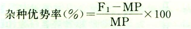 F1是一代杂种的计量值,MP是两亲的平均计量值。杂种优势率不仅可以比较同一性状的杂种优势大小,而且还可以相互比较各种不同性状之间的杂种优势大小。