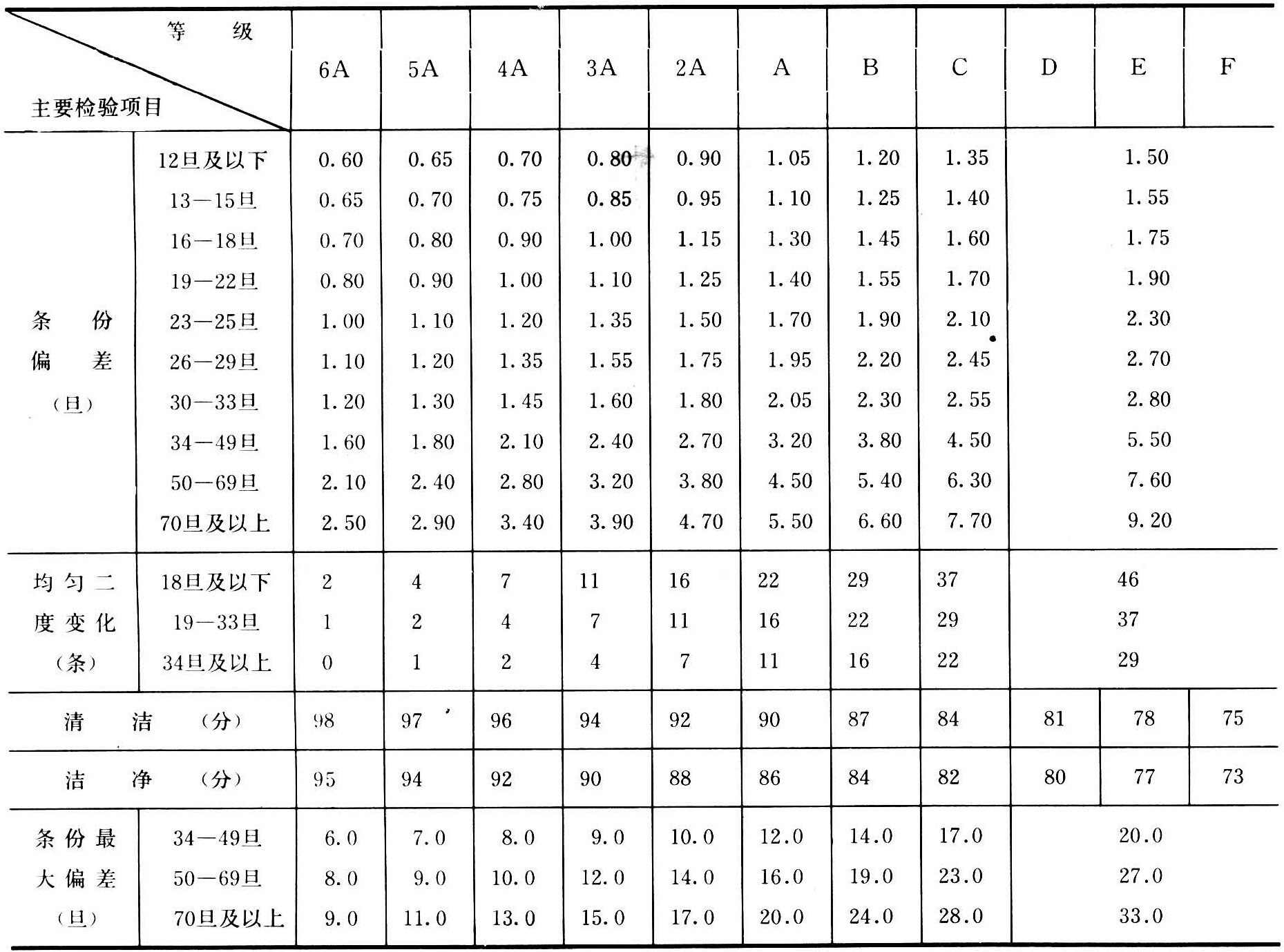 桑蚕丝品质分级标准(表1)