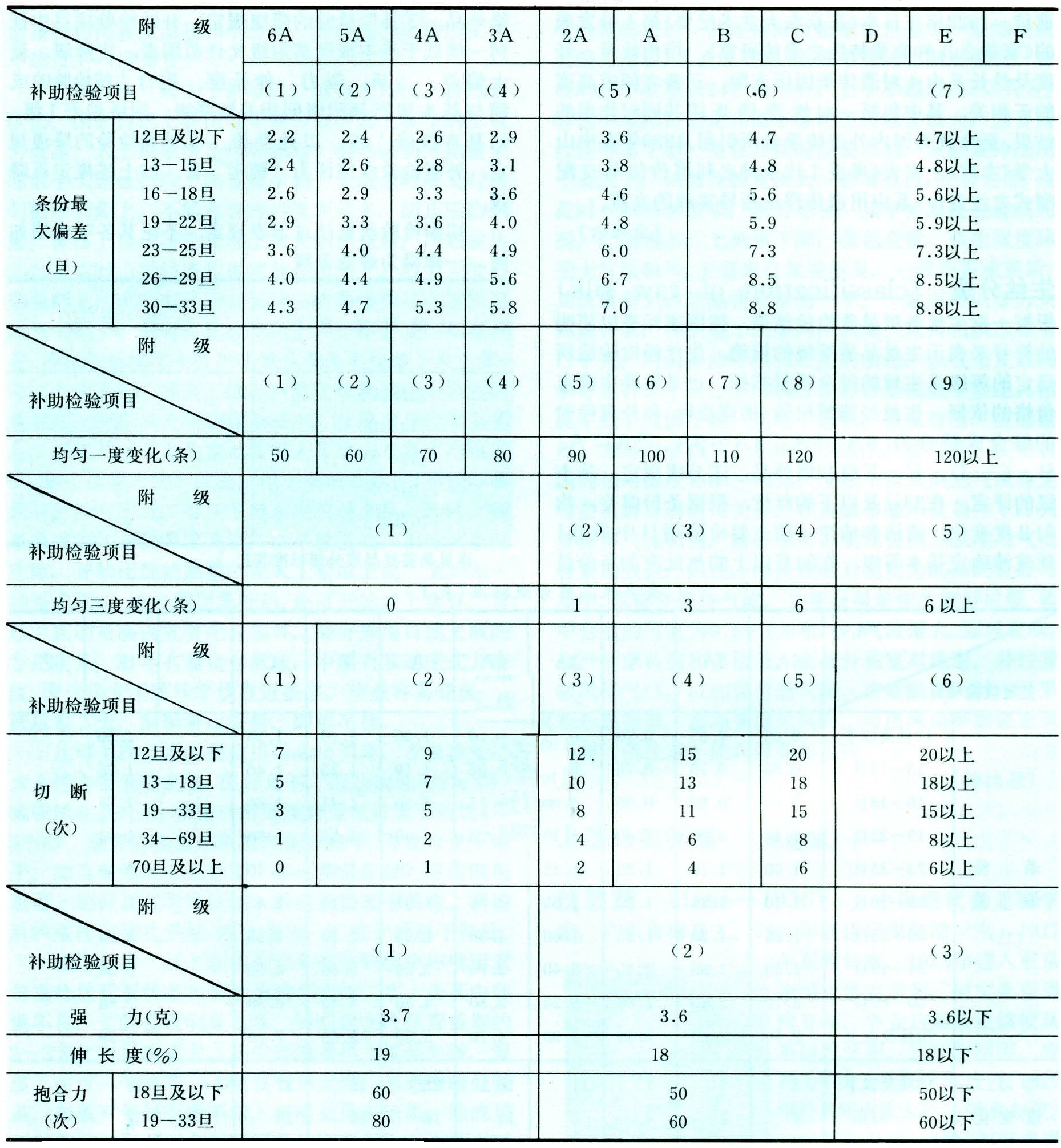 桑蚕丝品质分级标准(表2)