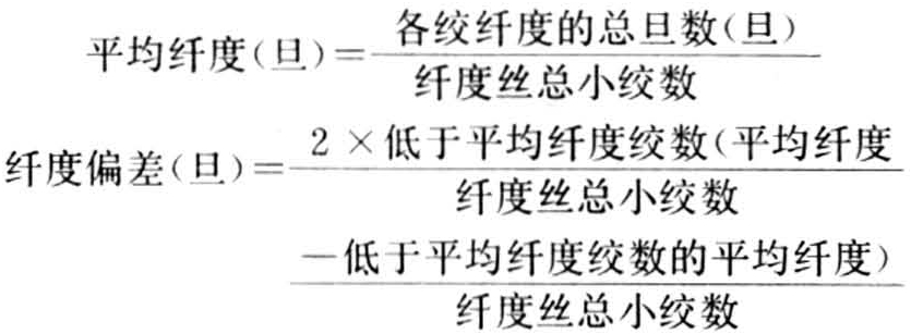 纤度最大偏差(旦),总绞数中取得最粗和最细各占2%,求出平均值与平均纤度之差,取其最大值。