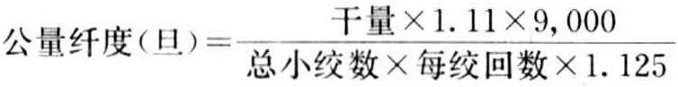 检验生丝纤维的粗细、均匀程度,其平均纤度和纤度偏差对丝织物有直接关系,如生丝纤度粗细不匀。偏差大都直接影响丝织物的产品质量。检验设备用纤度检尺机(卷丝框周长为1.125米,速度为300转/分,装有回转计数器和自停装置)、旦尼尔秤、工业天平、烘丝炉等。检验方法:将纤度检尺器按规定回数摇取小丝逐绞于旦尼尔秤上称记,求得“纤度总数”,再在天平上称得“条份总量”进行核对,纤度值计算见下式: