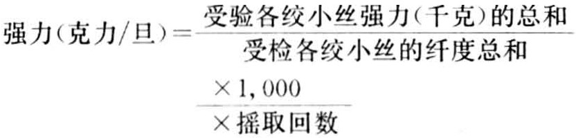 生丝的强伸力,对丝织工艺和丝织物的坚牢度有密切关系,尤其是作为细薄和高级丝绸原料,对强伸力要求更高,它对络丝、并丝、捻丝等准备工作影响很大,所以丝织厂对这个指标也极为重视,检验设备用强伸力机,拉量0~50千克附自动记录,工业用天平感量1/100克,其强力计算式为: