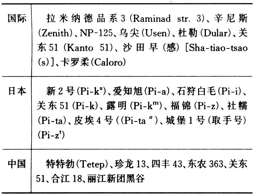 1922年日本佐佐木首先报道该菌生理分化现象,50年代由于抗病品种的抗性“丧失”,对病菌生理分化重新引起重视,许多国家先后筛选出各自的鉴别品种并分别鉴定出小种类群。1963~1965年美、日协作筛选出8个国际鉴别品种,1976年日本又提出具有不同单基因的9个新的鉴别品种,1976~1979年中国筛选出7个鉴别品种(表1)。