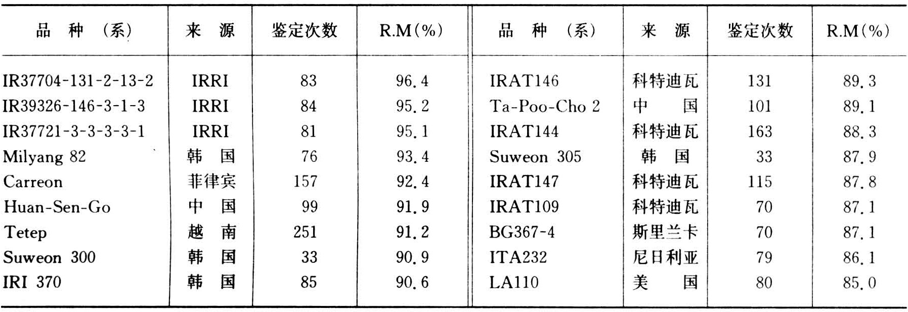 20世纪80年代以来国际稻瘟病圃继60年代后又鉴定出一批抗性种质资源(表2),在世界稻区应用。