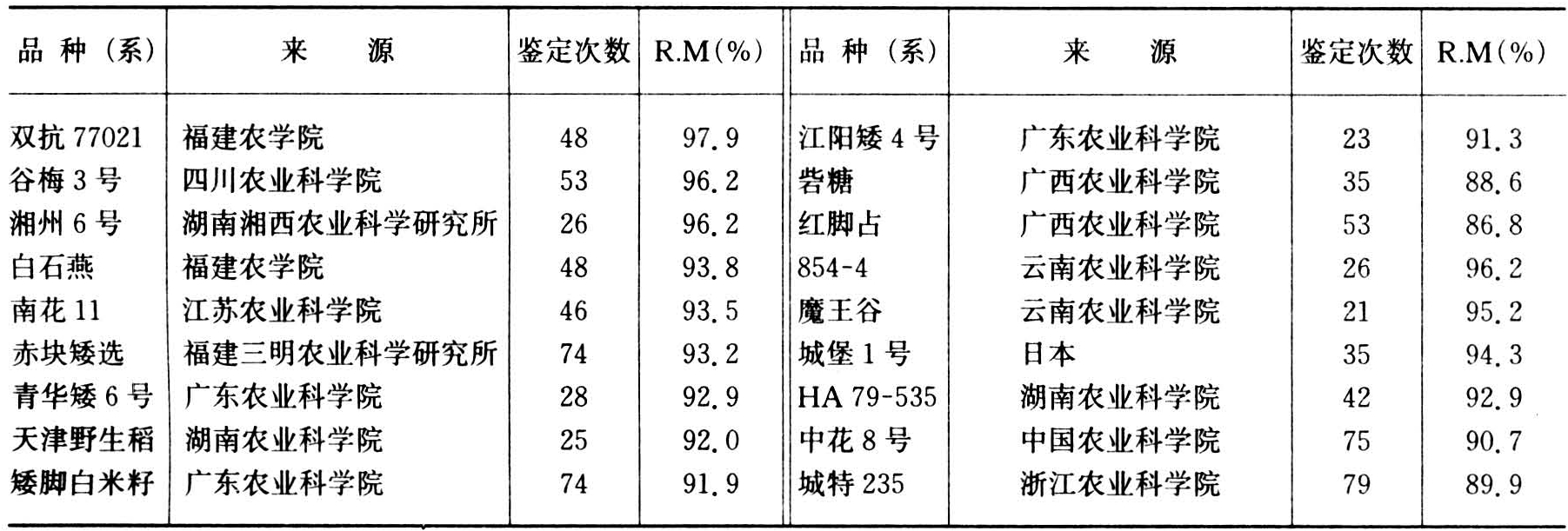 表3 中国稻瘟病圃(CRBN)1982~1987年筛选出的抗稻瘟病品种(系)