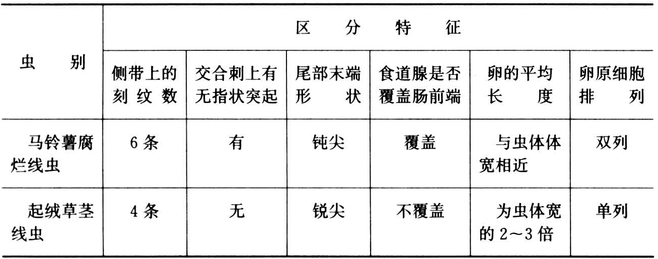 马铃薯腐烂线虫和起绒草茎线虫在形态上易于混淆(见表)。