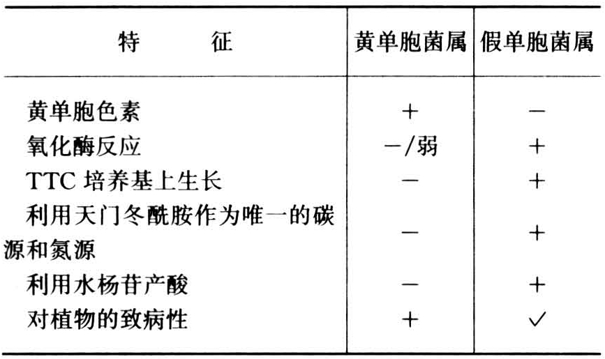 表1 黄单胞菌属与假单胞菌属的鉴别特征