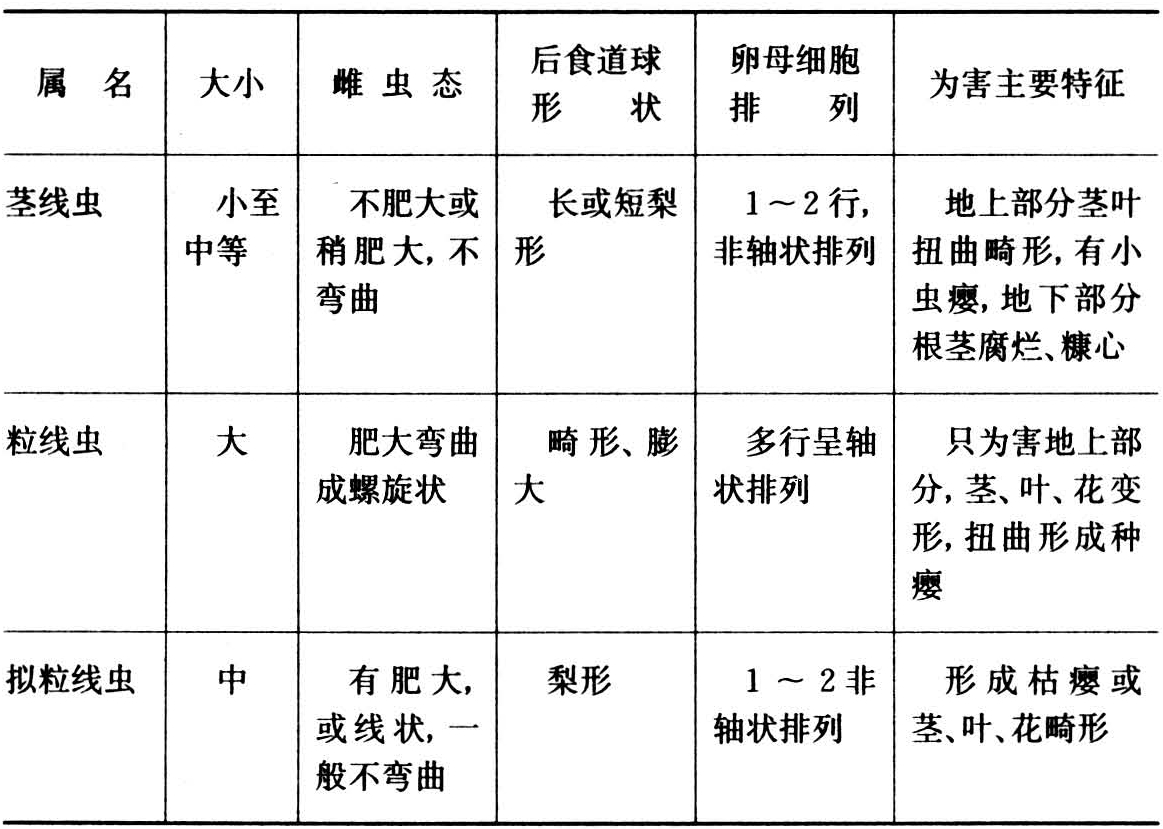 有破坏性茎线虫、水稻茎线虫、起绒草茎线虫和食真菌茎线虫。