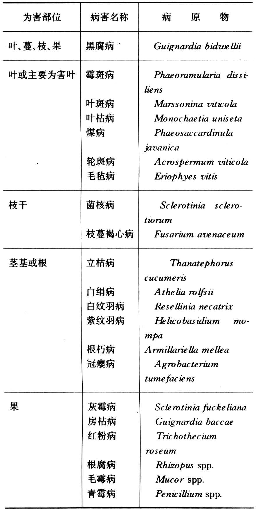 葡萄的其他常见病害见上表。