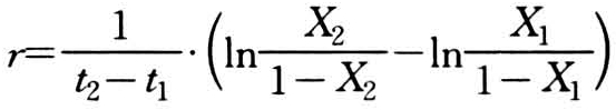 式中,r为逻辑斯蒂侵染速率(logistic infection rate),通常也简称表观侵染速率。在实际工作中,如果已经知道前后两期病情(X1、X2),可以通过下式推算r值:
