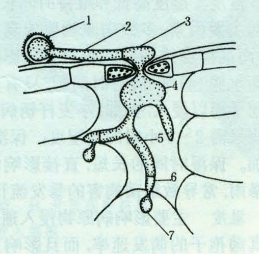 植物表面的气孔、水孔、皮孔、蜜腺等,都是病原物侵入植物体的通道。多数真菌和细菌都是从植物的自然孔口侵入,尤以气孔侵入最为常见。①气孔侵入。如小麦锈菌夏孢子萌发的芽管遇到气孔后顶端形成附着胞,附着胞下方长出侵入丝进入气孔,在气孔下腔膨大形成泡囊,再从孢囊上长出侵染丝侵入寄主细胞(见图)。一些细菌可以在有水膜的条件下通过菌体的游动从气孔进入寄主体内,如水稻条斑病菌。侵染叶和芽的滑刃线虫,可以直接从气孔进入叶片内。②水孔侵入。如水稻白叶枯病菌,通过植物叶缘的吐水组织——水孔进入排水腺,再进入导管侵害寄主。③皮孔侵入。一些真菌和细菌通过未被木栓组织封闭的皮孔侵入。如软腐病菌、马铃薯粉痂菌以及引起枝条溃疡的病原物。④蜜腺侵入。如梨火疫病菌由昆虫传带到花器的柱头和蜜腺上,菌体繁殖后,从柱头或蜜腺孔侵入。