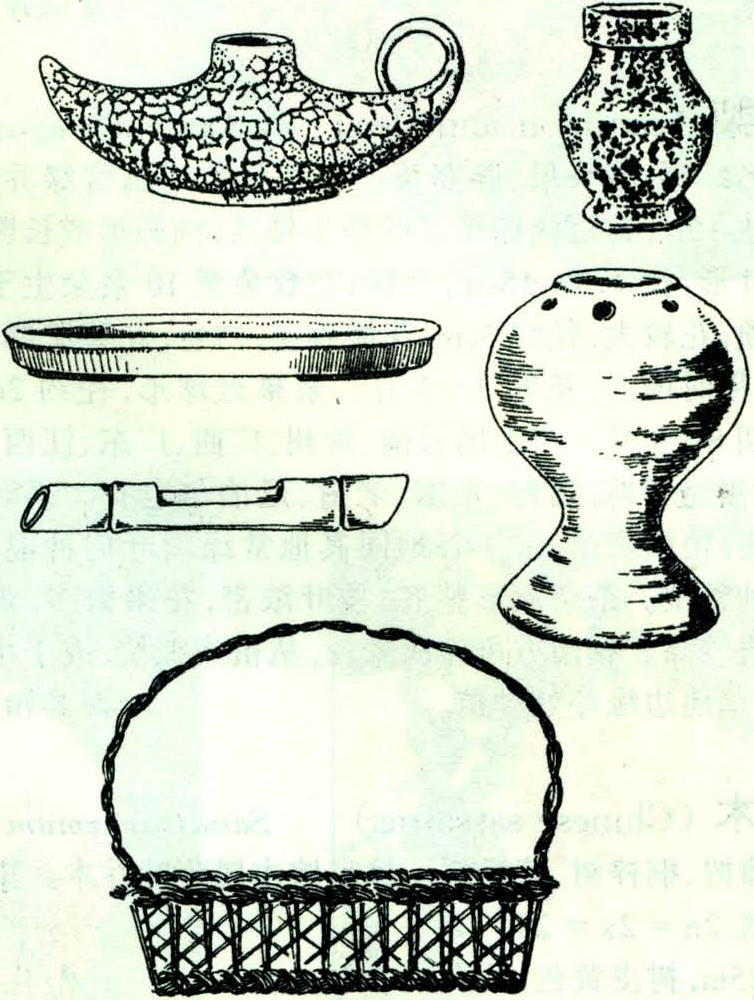 传统的插花器皿也有设底座的。现代插花容器除上述之外,也有玻璃制品及藤、竹、木制品等。还有的用生活器皿及工艺品做插花容器。