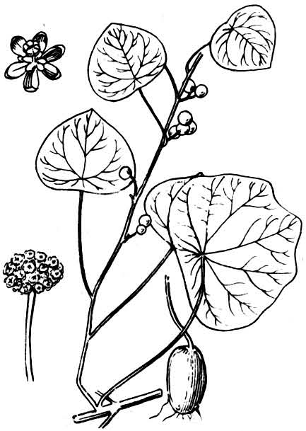 Stephania cepharantha,别名山乌龟。防己科千金藤属常绿藤本植物。茎细长,有纵向沟纹。叶互生,三角形至近圆形,顶端圆钝,具小突尖,掌状脉5~9条。花单性,雌雄异株。雄花序为头状聚伞花序,由18~20朵雄花组成,总花梗长1~2cm。雄花淡绿色,萼片4~6枚,长于花瓣,花瓣3~5枚,圆形、肉质,花径约0.5cm。核果球状,成熟后紫红色。原产中国。耐寒,喜富含腐殖质的土壤,宜冷凉气候和阴湿环境。以块茎繁殖,春天栽植。用于花架、墙壁及阳台绿化。