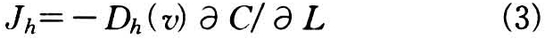 弥散和扩散的机理不同,但由弥散引起的溶质通量密度Jh可类似地表达为