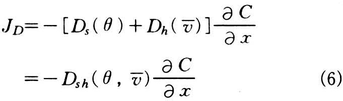 由于溶质扩散和弥散的数学表达式相似,而且土壤中两者总是同时发生和难以区分的,因此,通常把扩散系数和弥散系数合并,称为扩散—弥散系数Dsh,它是土壤含水量和平均流速的函数,即