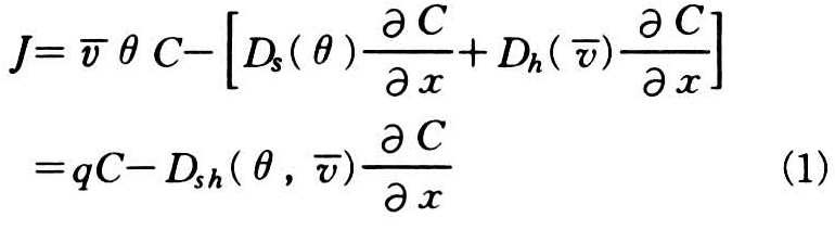 综合考虑质流、扩散和弥散等过程的土壤溶质运移总通量密度(J)。其方程表达式如下: