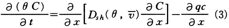 联立式(1)和式(2)即可得出一维的土壤溶质运移基本方程: