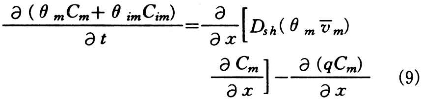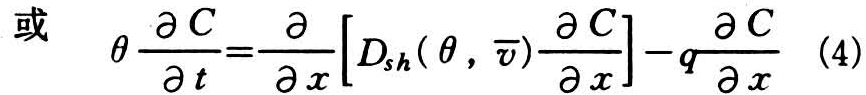 此外,若考虑到土壤死孔隙中非流动区的溶质运移时,(3)式又可改写为