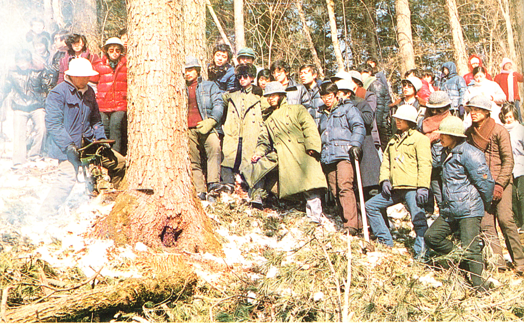 24 东北林业大学学生在做伐木实习