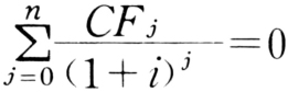 式中 CFj为第j年的现金流量,j=0、1、2,……n;i为贴现率;n为自投资开始至工程项目寿命结束的年限。满足上式的i值,即为工程项目投资的内部收益率。