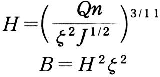式中 ζ值系优良河段的统计平均值;Q为平滩流量,以米3/秒计;n、J分别为整治河段综合糙率及河段比降,可参考优良河段资料选用。