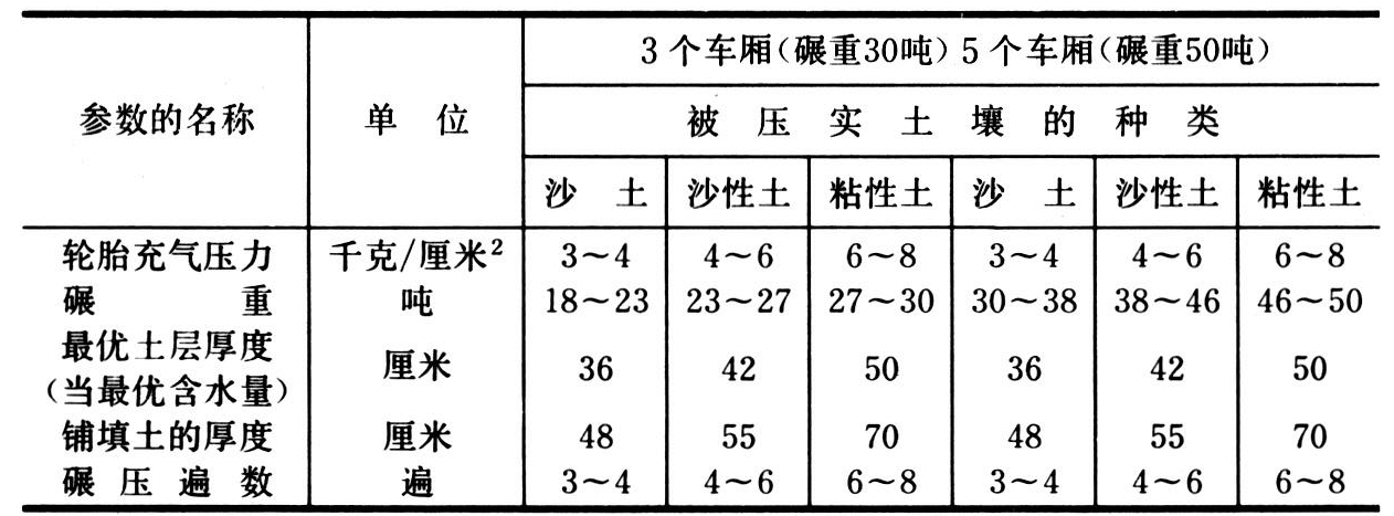 50吨拖式气胎碾在工作中参变数选择表(推荐值)