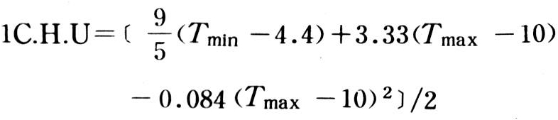 加拿大学者D.M.布朗认为每日最高温度与玉米生长发育呈非线性关系。因此,求算积温值的每日温度应该采用玉米热量单位C.H.U.(corn heat unit)