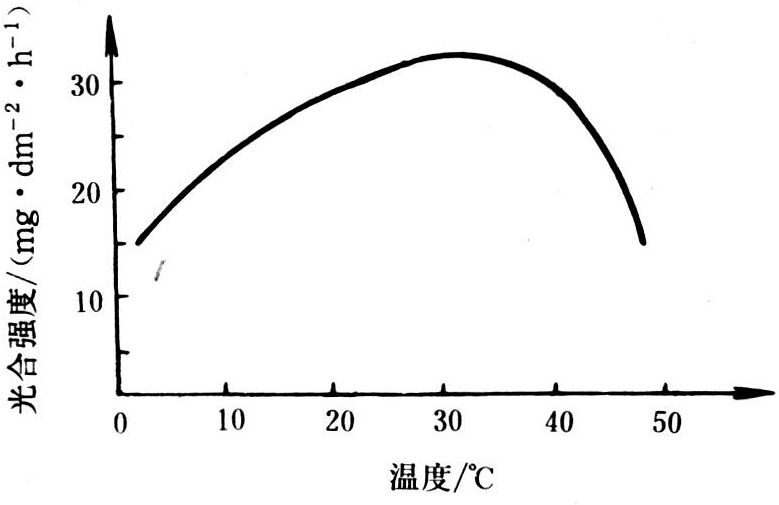 玉米为短日性植物,一般早熟种不如晚熟种对日照长短反应敏感,日照时间过长能延长玉米的正常发育和成熟。玉米光饱和点为7~8万勒克斯(单株),光补偿点为1500勒克斯(群体)。自然光范围内,玉米群体达不到光饱和点。c o 2补偿点为4~6ppm。玉米为C 4作物,在低光照度,低CO 2浓度下仍可继续光合作用,单叶最大光合效率为60—80毫克C O 2 ·分米-2 ·时-1。光合作用的最适温度是30~40℃,20℃以下光合作用急速下降(图2)。玉米籽粒干物质累积过程中,至少需要3.0~3.7万勒克斯,才能满足要求。同时,在相同的太阳能辐射条件下,光合速率随日长增加而增加,太阳辐射对产量影响较大,尤其在籽粒灌浆阶段对产量形成更为重要。作物下层增加反射光,可增加籽粒产量,切除玉米顶部遮荫的雄花可提高籽粒产量4~12%。