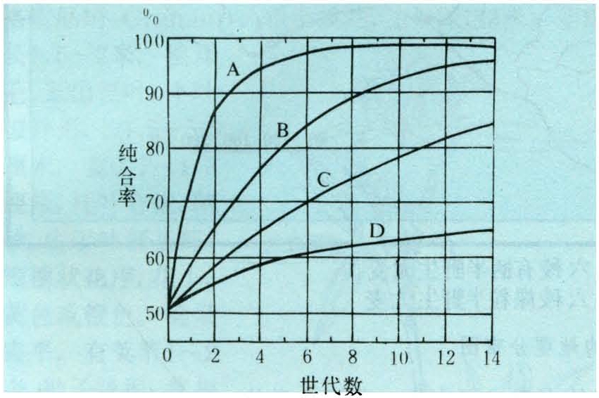 图2 不同近交方式的后代中,纯合体百分率在各代的变化情况