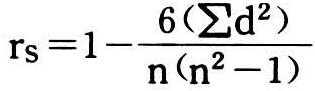 两个变数以等级或位次表示时的线性相关。其相关系数记为rs表示,用于分析以等级表示的质量或数量资料间的关系。计算公式为: