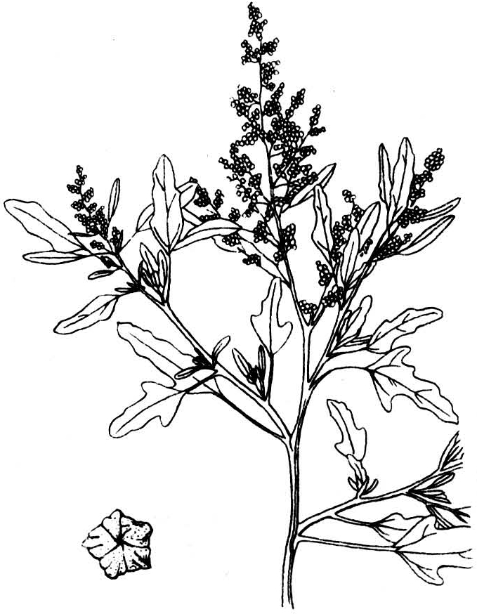 小藜Chenopodium serotinum L.和藜Chenopo-dium album L.常混称为灰灰菜、灰条。藜科一年生植物。小藜的株高通常在50厘米以下,叶长卵形或矩圆形,基部叶有两个较大裂片,适生盐碱砂质土壤。藜的株高100厘米左右,叶卵形,菱形或三角形,叶基部宽大,耐盐碱。这两种杂草在中国有广泛分布(见图4)。