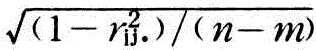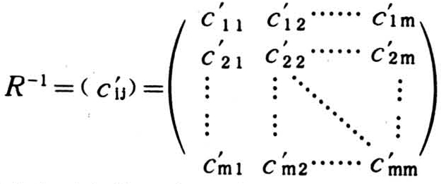当m≥4时,用相关矩阵的逆矩阵元素计算偏相关系数较为简便。由m个变数可算得任两个变数的线性相关系数,并组成一个m×m阶相关矩阵R: