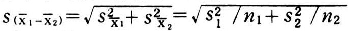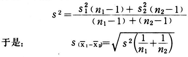 分别为两个样本各自的方差和各自的标准误平方;n1,n2为各自的容量。在小样本条件下,可用