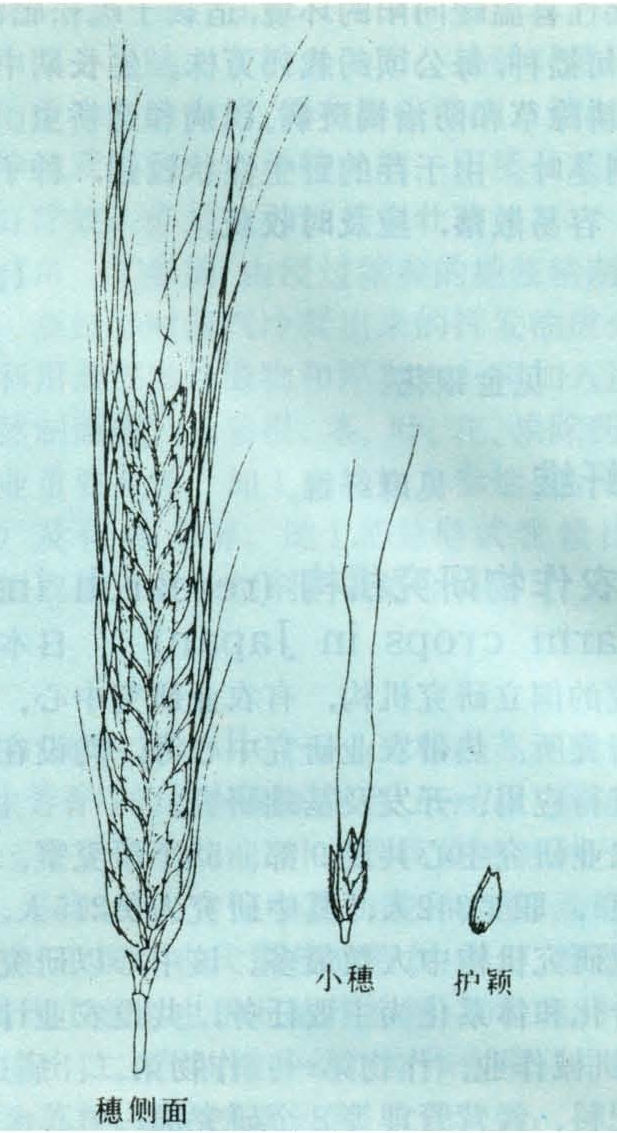 春性,成熟很晚。株高130厘米左右,成株叶片有粗硬茸毛。穗部类似提莫菲维小麦,穗扁平,长8~9厘米,每穗约有24个小穗,每小穗具2芒,芒与穗轴平行,每小穗2~3粒。颖壳白色、有毛。穗轴易折断,折断方式为上节位。护颖脊窄。籽粒带皮(稃),蛋白质含量约24%。对白粉病、条锈病、叶锈病、散黑穗病、腥黑穗病抗性很强,不抗秆锈病。耐热性差。与其它小麦种杂交不亲和,因此它虽是一系列真菌免疫基因的载体,但至今尚未应用于育种中。它能引起种间杂交的细胞质雄性不育,并具有与提莫菲维小麦相似的Rf育性恢复基因。(郑殿升)
